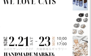 イベント 「森のバスケット × WE LOVE CATS」inおのだサンパーク2026年2月21(土)〜23(月) 「森のバスケット × WE LOVE CATS」がおのだサンパークで2月21(土)〜23(月)に開催されます。ハンドメイドマーケット、猫のぬりえ(無料)コ... 2026.02.01 イベント