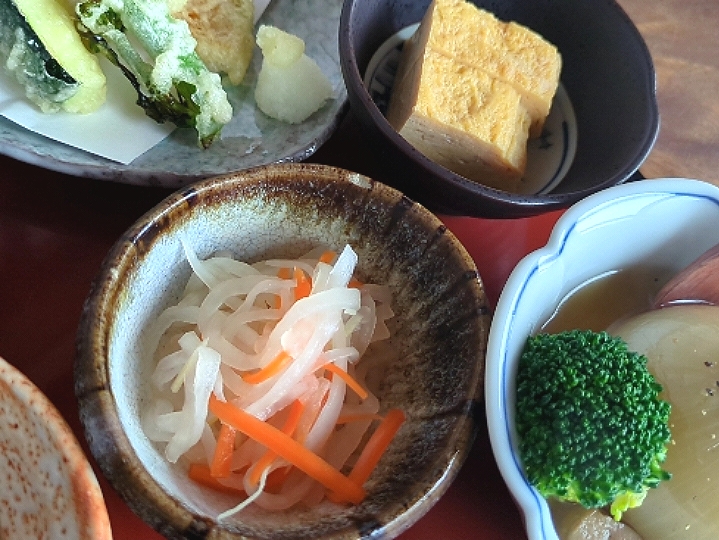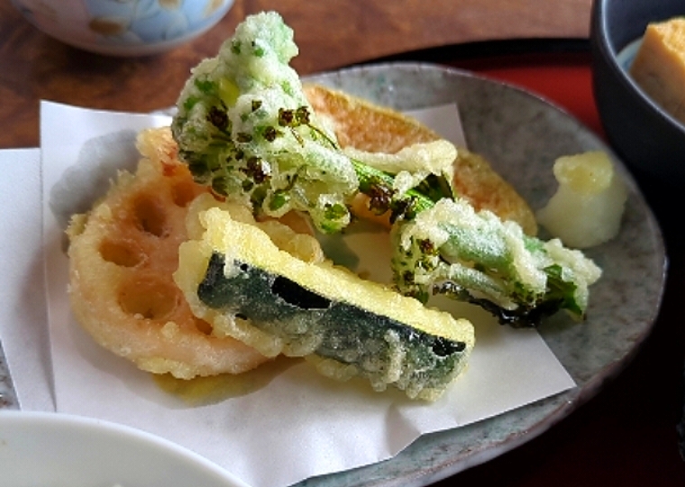 野菜の天ぷらはサクサク熱々。冷めてもサクサクでした。