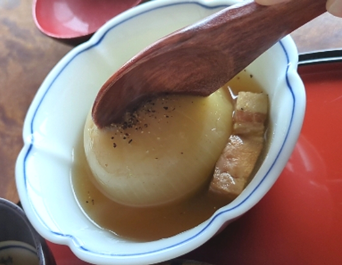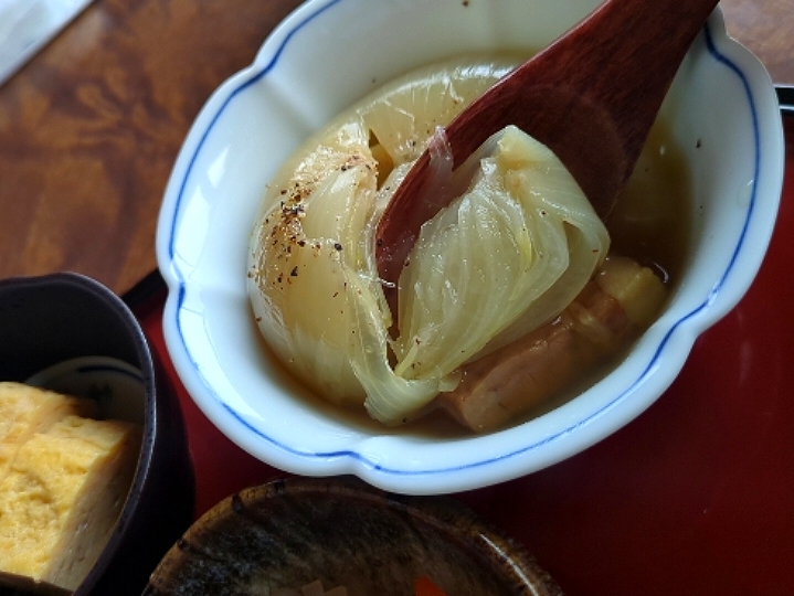 中までしっかり味が染みていて、とろとろ。玉ねぎの甘みが口いっぱいに広がりました。