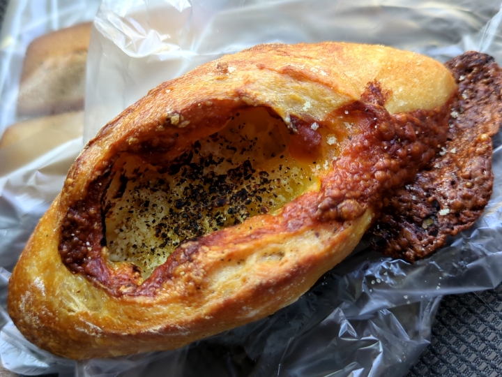 パンは小麦の味が感じられ、チーズのコクと塩気が合います。