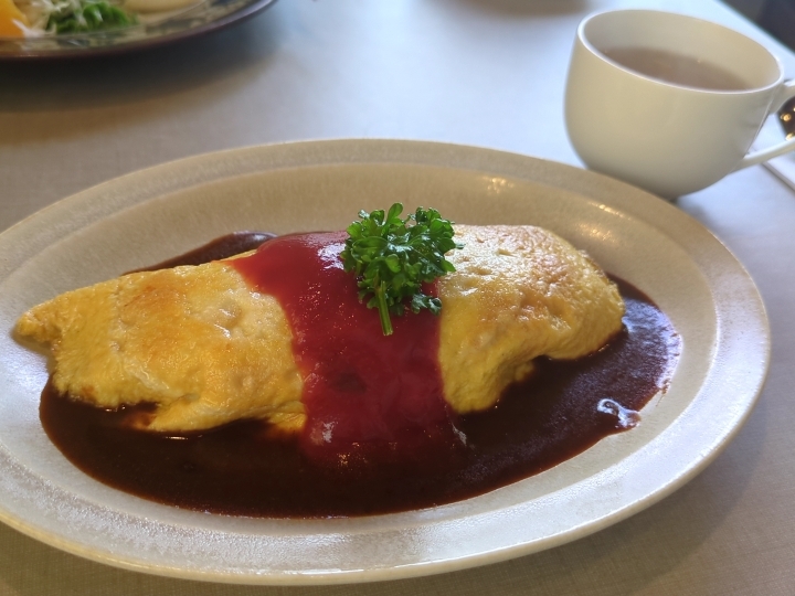 ケチャップソースと、デミグラスソースで酸味と甘みのバランスがよく、食べ応えがあります。