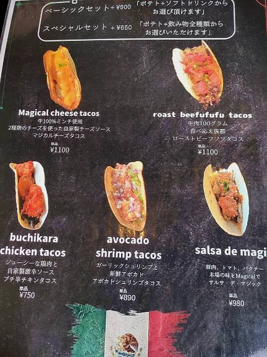 ●Magical cheese tacos スペシャルセット(タコス1,100円 ポテト、ドリンク全種類の中から選べ+650円)