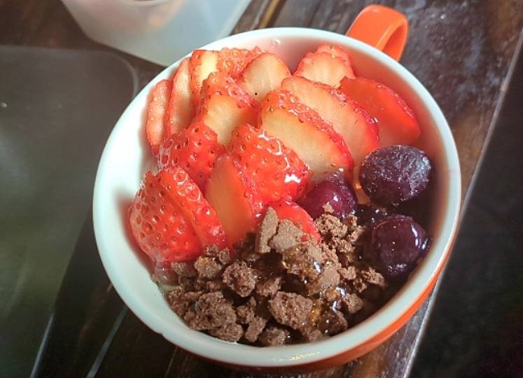 イチゴが甘くてジューシーでした。ブルーベリーとはちみつもかかっていて贅沢。