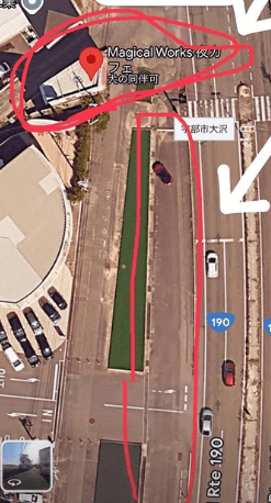 入り口はお店を左に見ると左車線だと入れますが、反対車線から入る場合はUターンが必須。