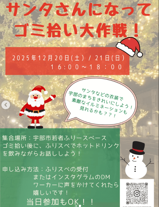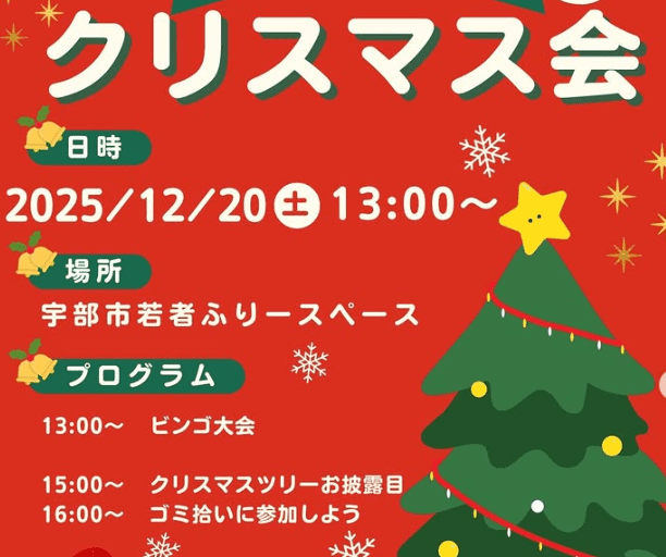 宇部市若者フリースペースで「クリスマス会」が12月20(土)に開催されます。