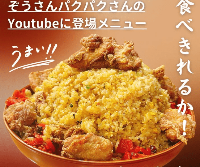 山陽小野田市厚狭にある「麺菜酒家らいち 厚狭店」では登録者数100万人越えの大食いYoutuberぞうさんパクパクの実際に食べたメニューが食べれちゃいます!