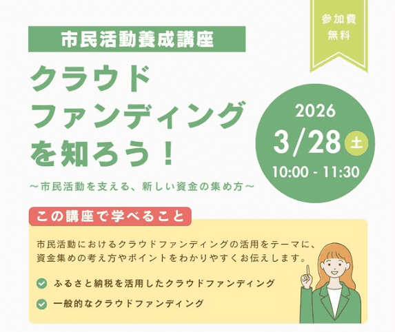 今回の講座では、市民活動におけるクラウドファンディングの活用をテーマに、資金集めの考え方やポイントをわかりやすくお伝えします。☝💡