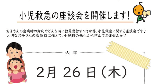山陽小野田市、スマイルキッズで「小児救急の座談会を開催します!」が2月26(木)に科開催されます。