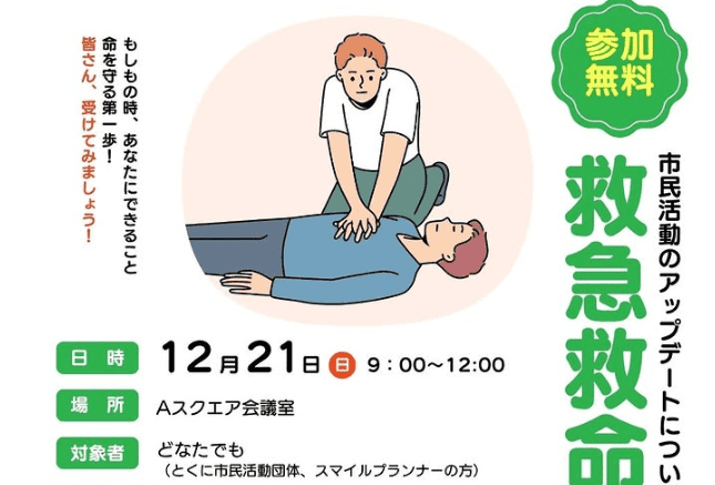 山陽小野田市Aスクエア会議室で「救急救命講習会」が12月21(日)開催されます。