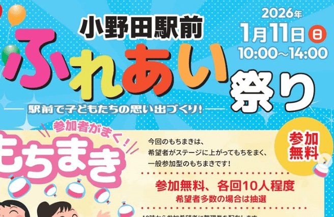 「小野田駅前 ふれあい祭り」が1月11(日)開催されます。