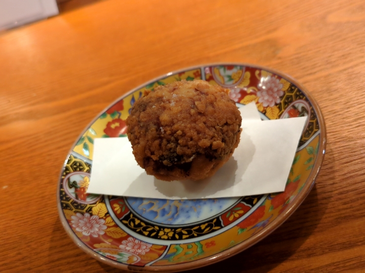 まるいから揚げ(199円)。衣にしっかり味が付いていてお酒が進みます。