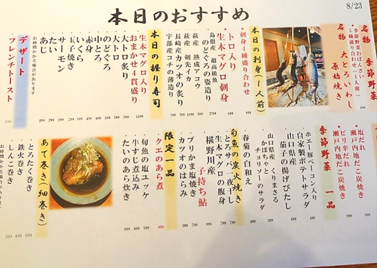 本日のおすすめ。