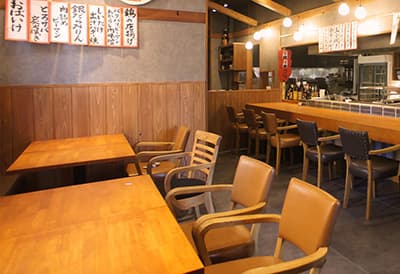 カウンターは8席。テーブル席は3つほど、奥には半個室が6部屋あります。