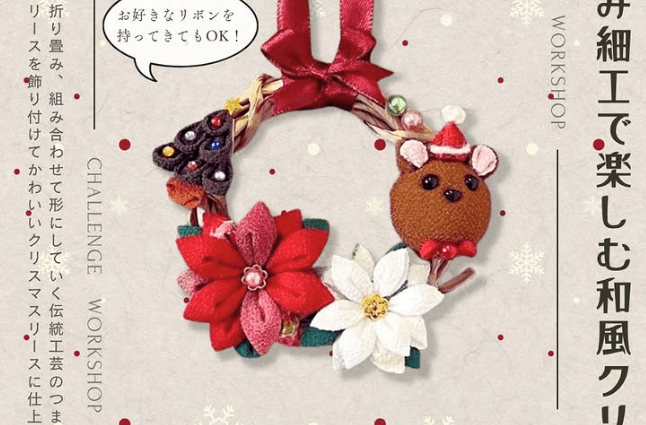 山陽小野田市民活動センター 交流ホールで「つまみ細工で楽しむ和風クリスマス」が12月7(日)に開催されます。
