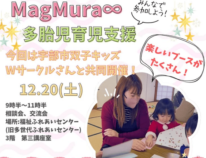 宇部市琴芝、福祉ふれあいセンターで「MagMura∞多胎児育児支援」が12月20(土)に開催されます。