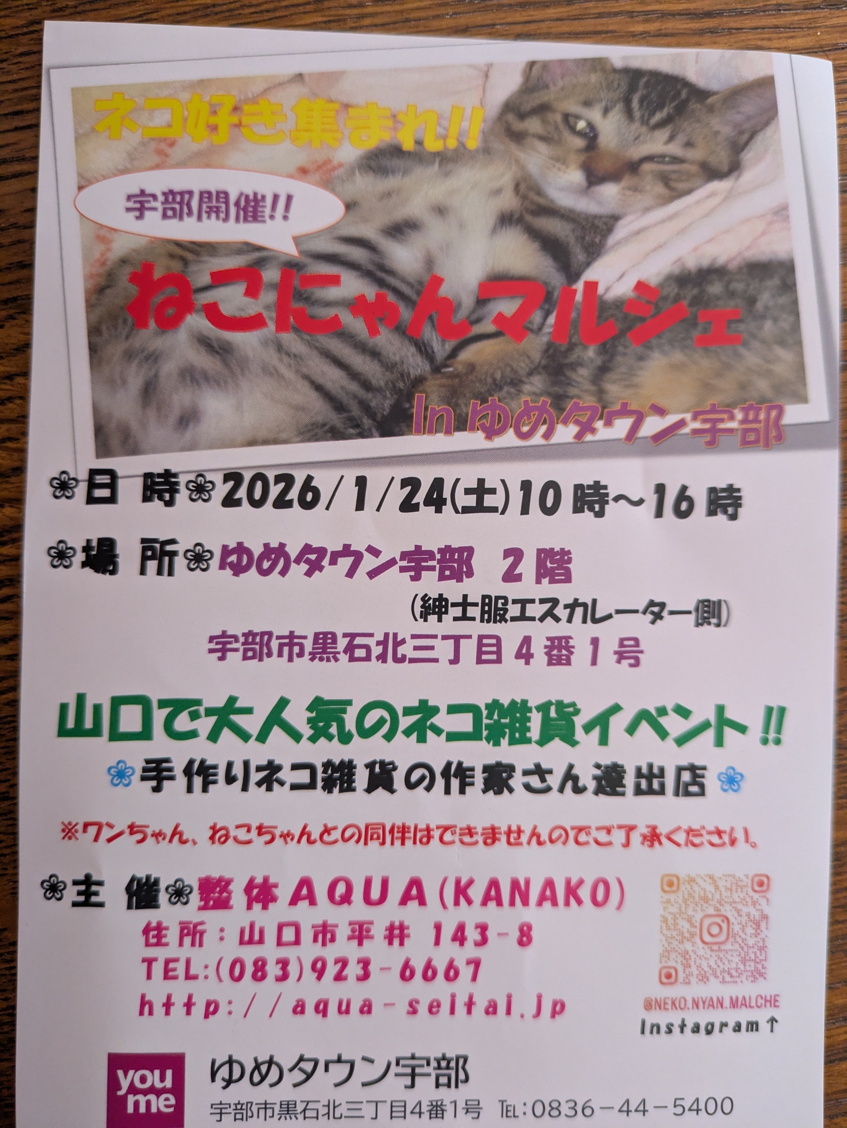 ゆめタウン宇部「ネコ好き集まれ!! ねこにゃんマルシェ」2026年1月24(土)