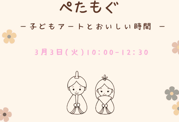 「ぺたもぐ-子どもアートと美味しい時間」が3月3(火)に開催されます。