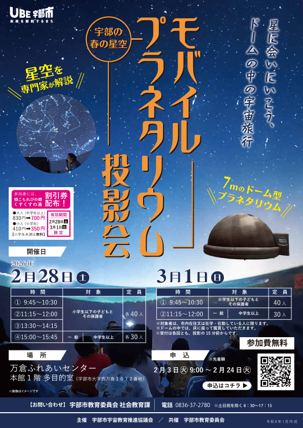 「モバイルプラネタリウム投影会~宇部の春の星空を学ぼう~」参加者募集|宇部市公式ウェブサイト
