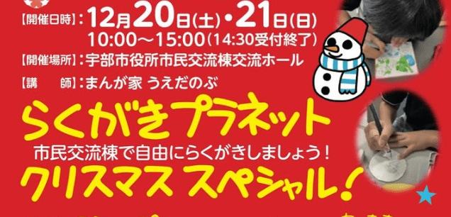 宇部市役所市民交流棟交流ホールにて「らくがきプラネット クリスマススペシャル!」が12月20(土)21(日)に開催されます。