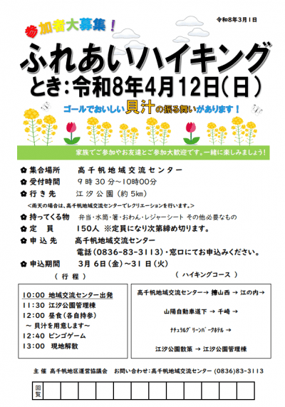 【高千帆地域交流センター】ふれあいハイキングの参加者を募集します。 – 山口県山陽小野田市公式ホームページ