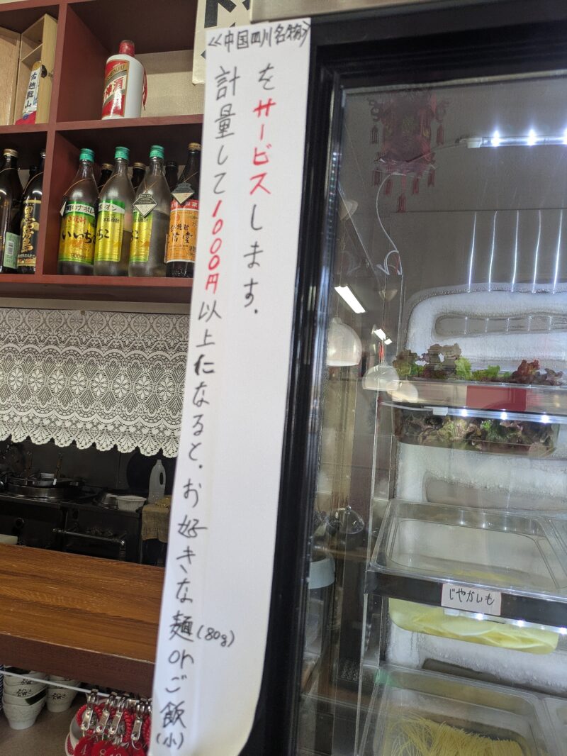 具材と麺で1000円を超えると小ご飯または好きな麺80gのサービスがあります。