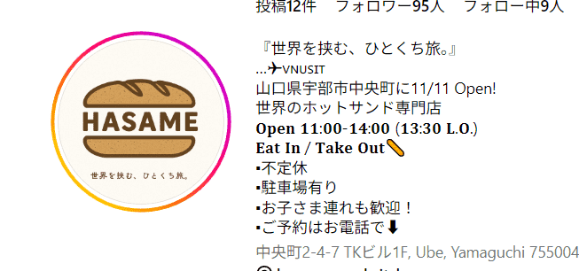 【開店】宇部市中央町「ホットサンド専門店「HASAME(ハサメ)」2025年11月11(火)オープン✨ 2025.11.152025.11.23 宇部市中央町に「ホットサンド専門店「HASAME(ハサメ)」が2025年11月11(火)オープン✨ Instagramも立ち上がっていました▼ この投稿をInstagramで見る HASAME(ハサメ)(@hasame.sandwitch)がシェアした投稿 この投稿をInstagramで見る HASAME(ハサメ)(@hasame.sandwitch)がシェアした投稿 ホットサンド専門店「HASAME(ハサメ)宇部市中央町2丁目4−7定休日 不定休(Instagramをご確認ください)営業時間 11:00~14:00