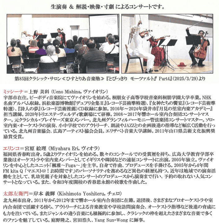 第90回クラシック・サロン《ひすとりあ音楽塾》THE FINAL~Mozart vs. Beethoven~ – ヒストリア宇部(公式Webサイト)