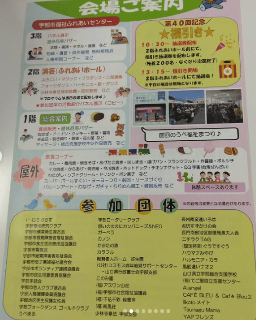 宇部市福祉ふれあいセンターで「第40回 うべ福祉まつり」が3月8(日)に開催されます。