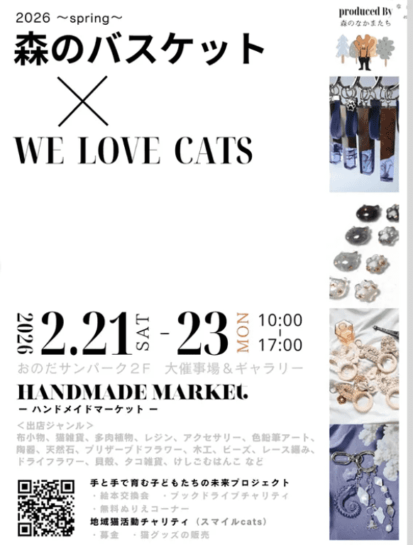 「森のバスケット × WE LOVE CATS」がおのだサンパークで2月21(土)〜23(月)に開催されます。