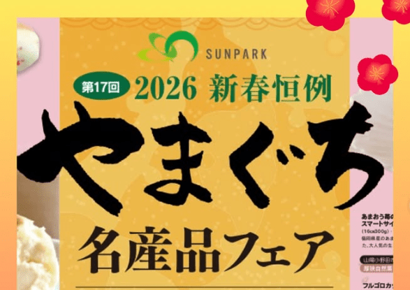 おのだサンパークで「第17回 2026新春恒例 やまぐち名産品フェア」が1月10(土)、11(日)、12(月・祝)開催されます。